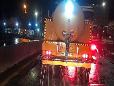 در معابر سطح شهر با هدف جلوگیری از یخ زدگی و معضلات ناشی از آن، توسط نیروهای اجرایی سازمان مدیریت پسماند شهرداری قزوین، محلول پاشی صورت گرفت.
